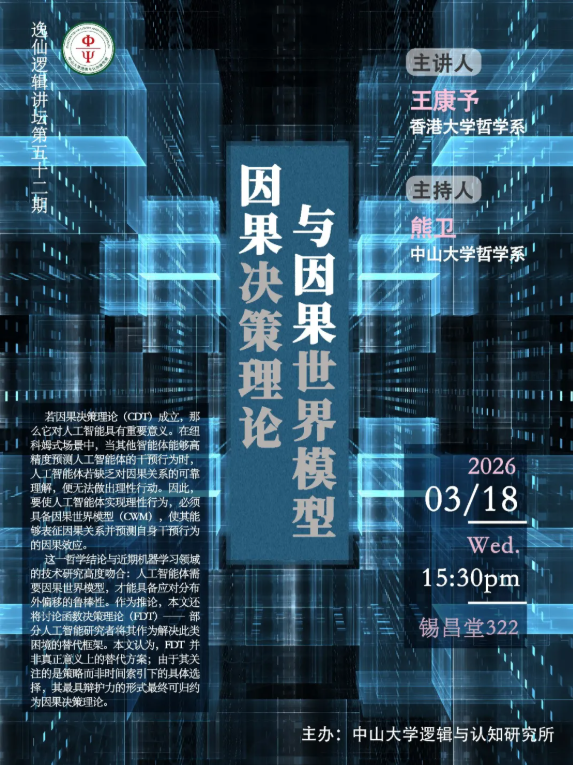 逸仙逻辑讲坛第五十二期|王康予:因果决策理论与因果世界模型